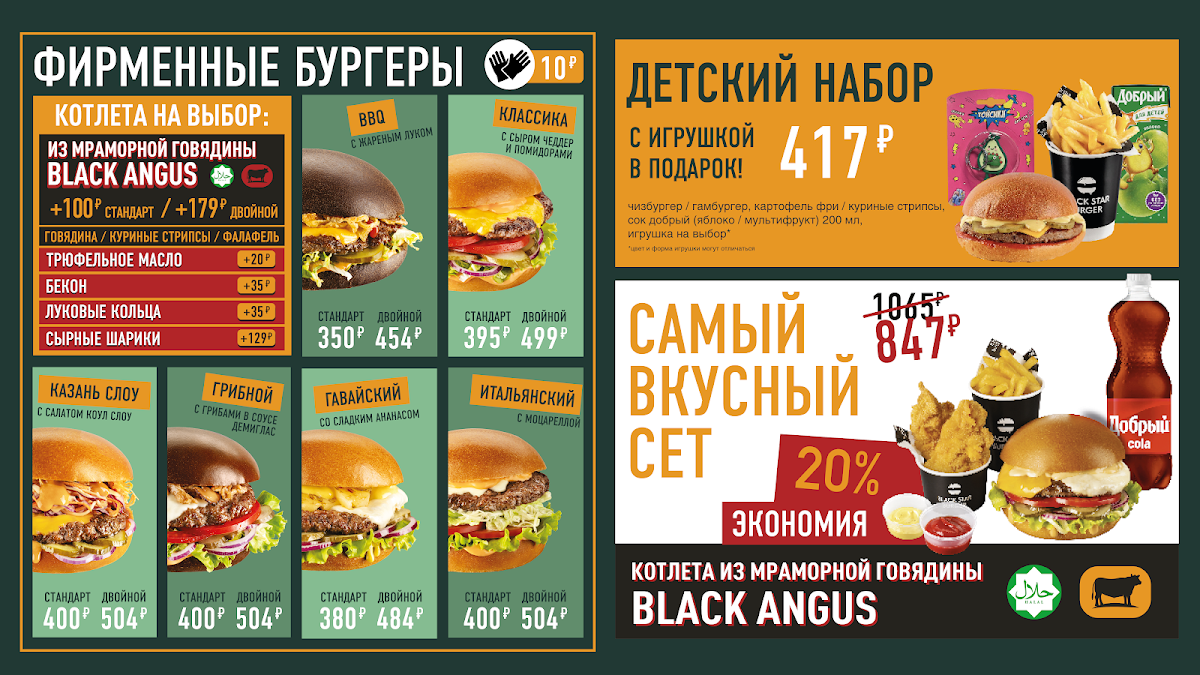 Welcome to Black Star Burger, a culinary gem located on Ulitsa Pavlyukhina in Kazan, Russia. This establishment is not just another burger joint; it stands out for its commitment to quality and flavor. Customers rave about the generous portions, particularly the juicy burgers made from marbled beef, which deliver a delightful taste experience.